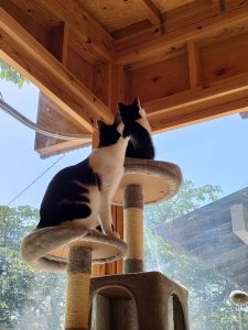 下のハンモックではサツキちゃんが身づくろい中☺️