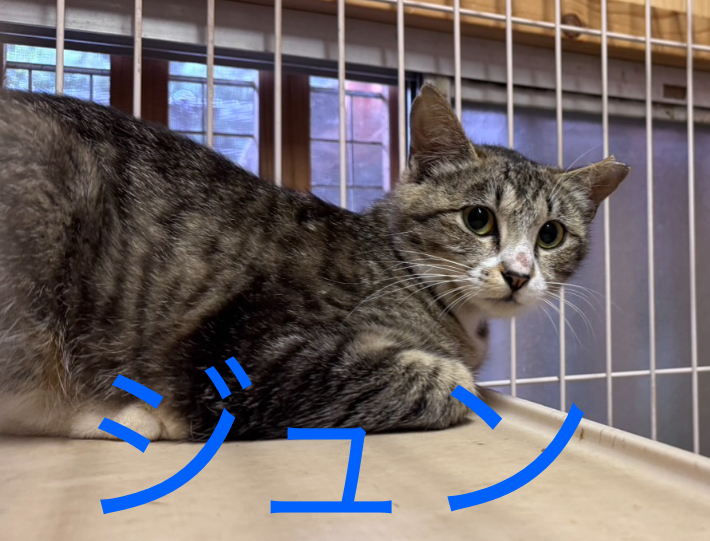 同じく最近保護したジュンくん(キジトラ)も、生まれて間もない子猫です。