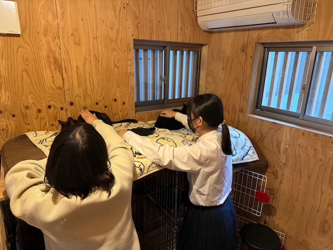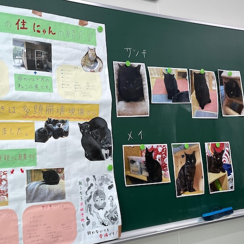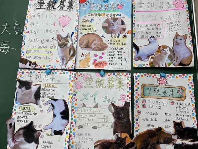 命のつなぎ方の授業担当の片井先生が、授業に参加できない生徒さんたちも参加して欲しいという思いから猫クラブを作り、猫クラブのメンバーもお世話と里親探しに加わりました。