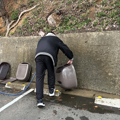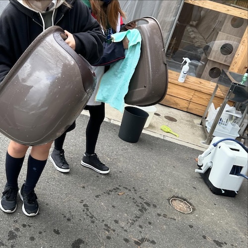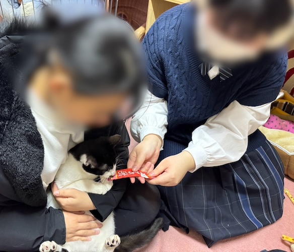 現在、主に地域の方5人、教員2人、生徒たちで保護猫のお世話をしています。