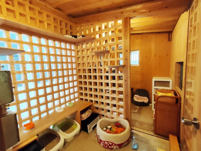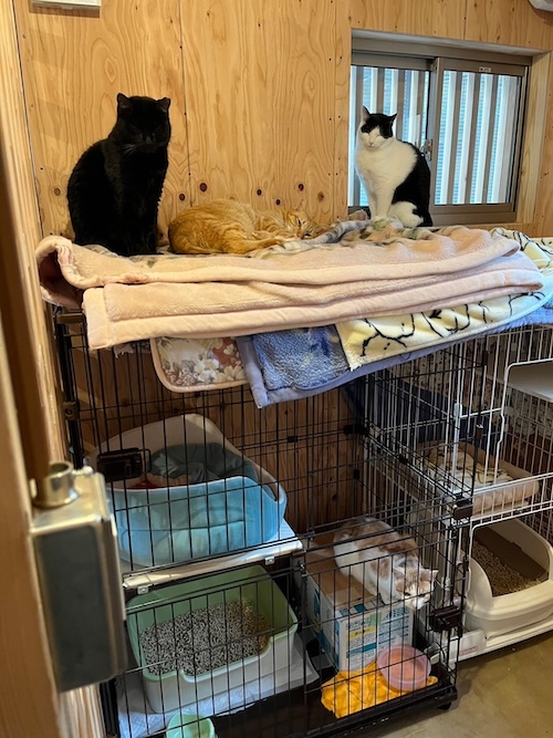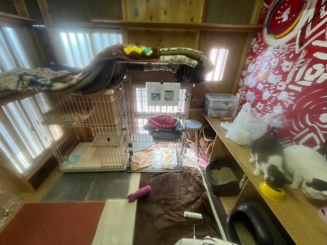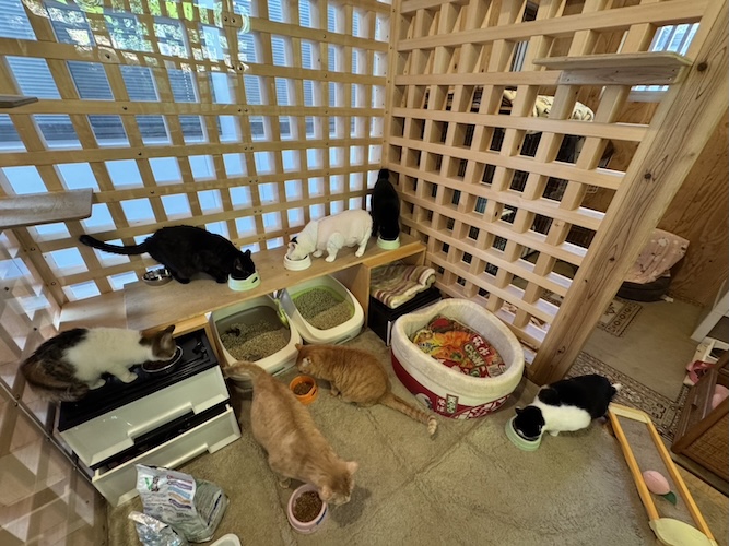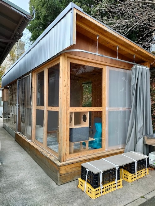 猫の保護部屋は2棟あります。1棟は、廃材を利用して大工さんに建ててもらいました。