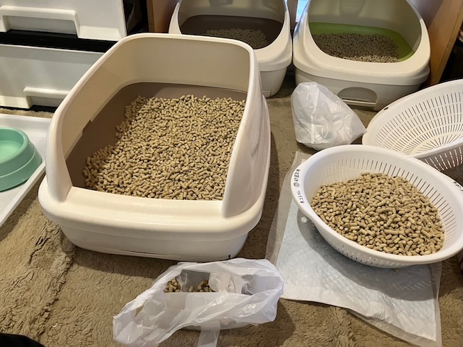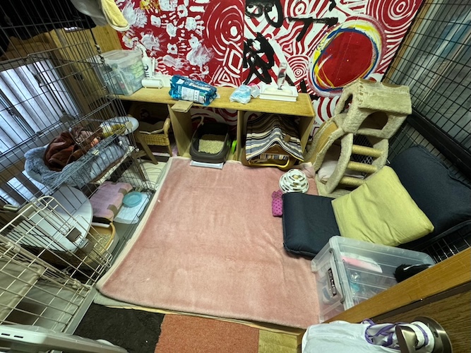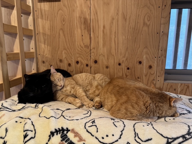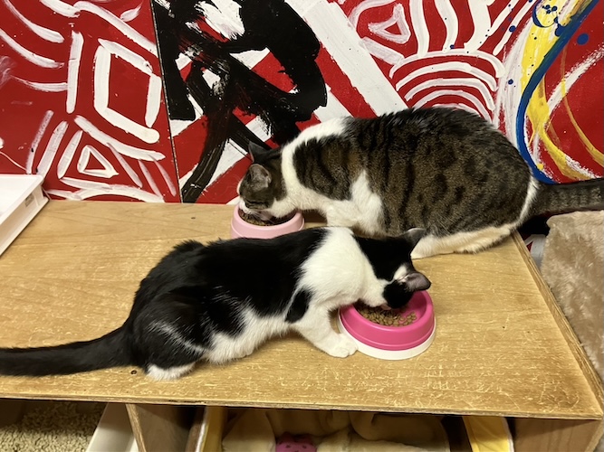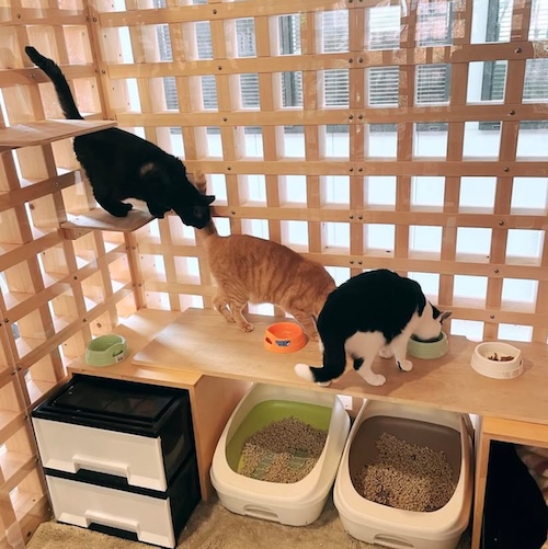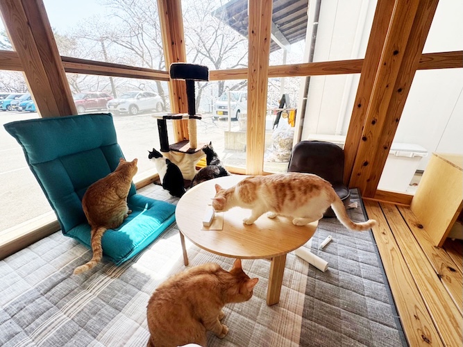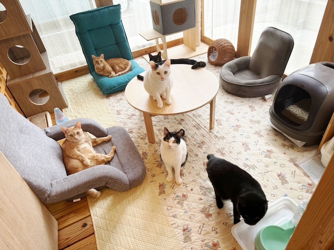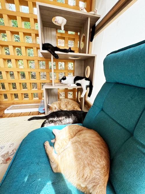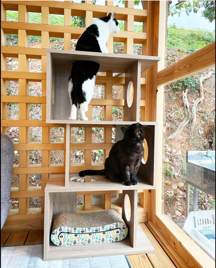 仲がよくない猫を分けたり、1棟が日が当たらないため、猫を入れ替えたりして、2棟を利用しています。