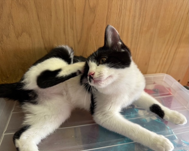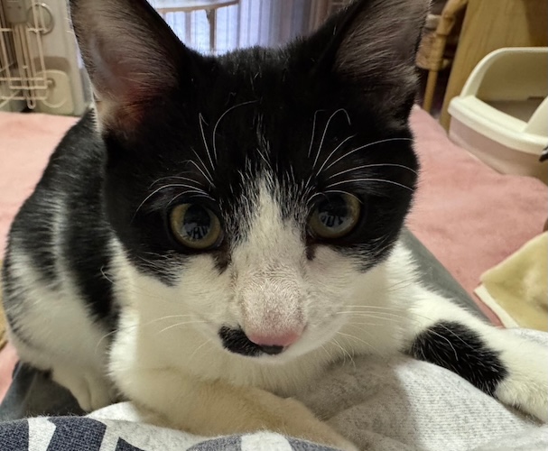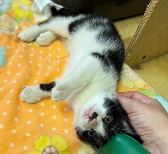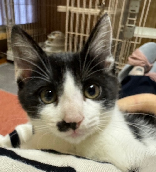 腕白盛りに元気いっぱい。何にでも興味があるハイテンションボーイ。同室の成猫のご飯に横から顔を突っ込んだり、遊びたくて飛びかかったり噛みついたりして怒らせています。 こんな性格なので、先住猫が繊細な子だったら合いませんので強く元気で教育的指導をしてくれる若い親分肌の成猫か、もしくは先住猫なしで、有り余るパワーを発散させるくらいいっぱい遊んでくれるご家族、猫飼育経験者さんで多少暴れたり噛んだりしても、ご理解いただけるご家族様が理想です。